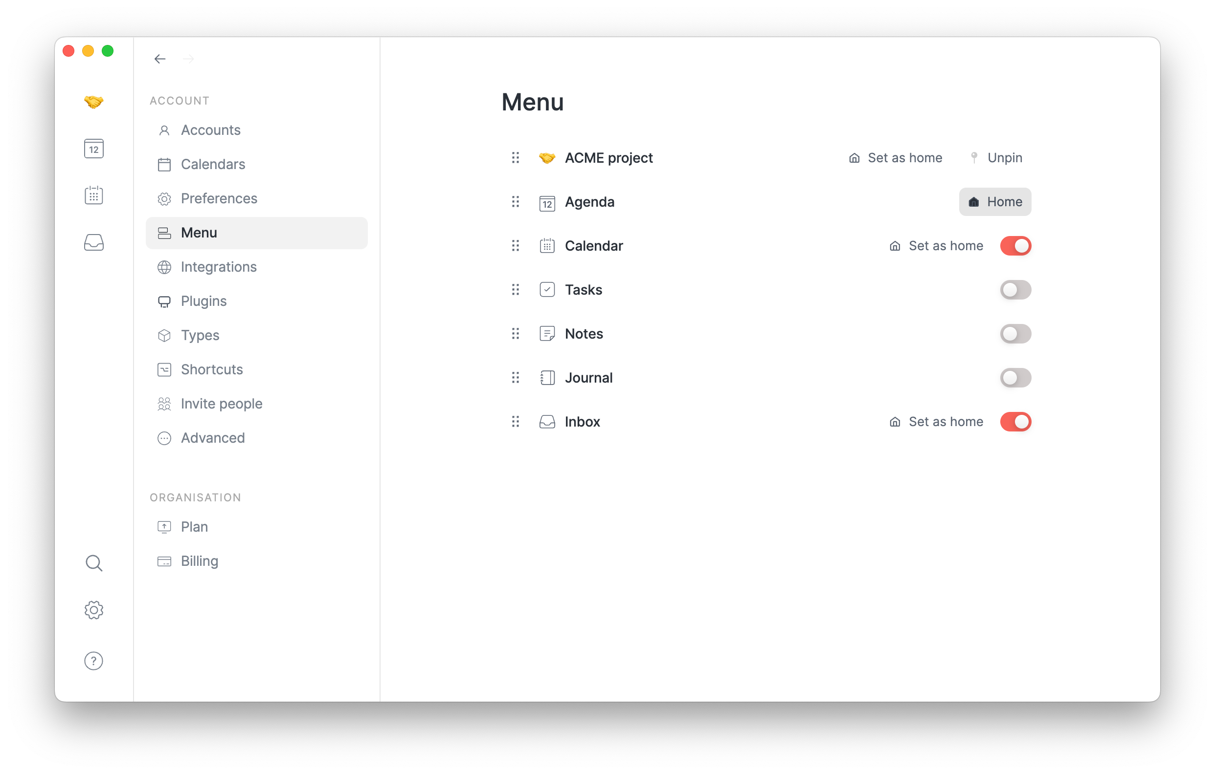 Drag tasks between sections (Overdue, Upcoming, Unplanned etc.)