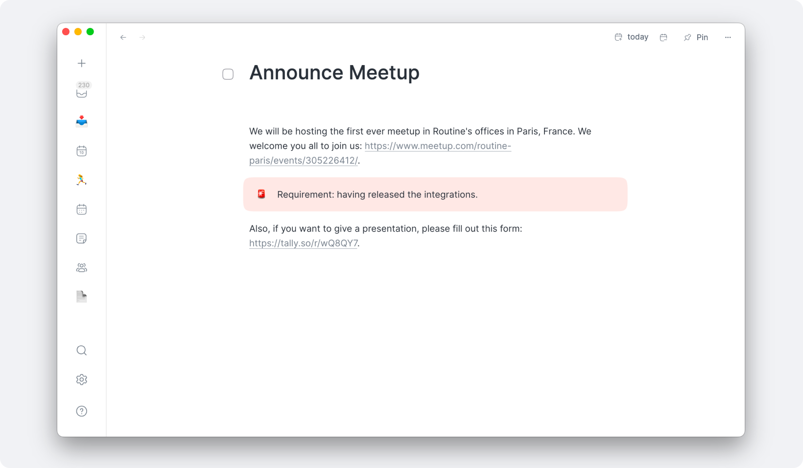 Routine’s vision is to break such data silos. And because Routine already handles your meetings, notes and tasks, it is the ideal place to put more of those, just now automatically thanks to AI.