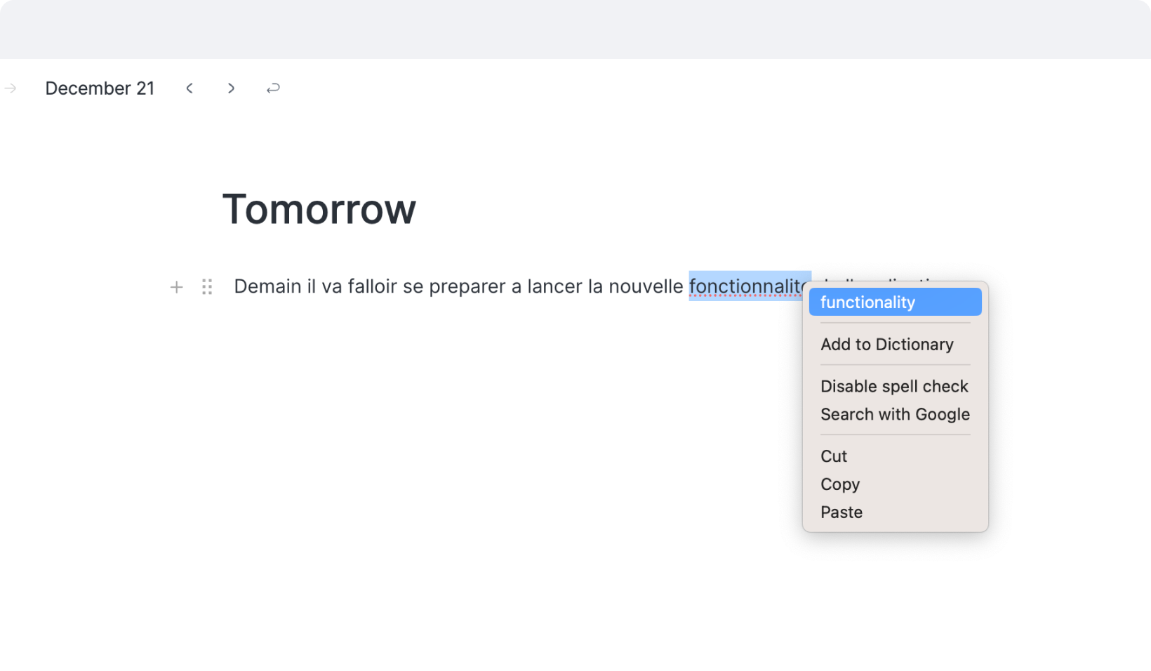 You can now configure Routine’s spellchecker to take into account the languages you write in or disable the spellchecker if you prefer.