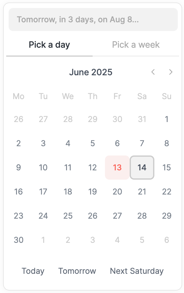 The Schedule and Postpone actions have been merged and replaced by a new Plan action. This new action is simpler to understand, has a beautiful user interface and supports natural language for the most advanced users.
