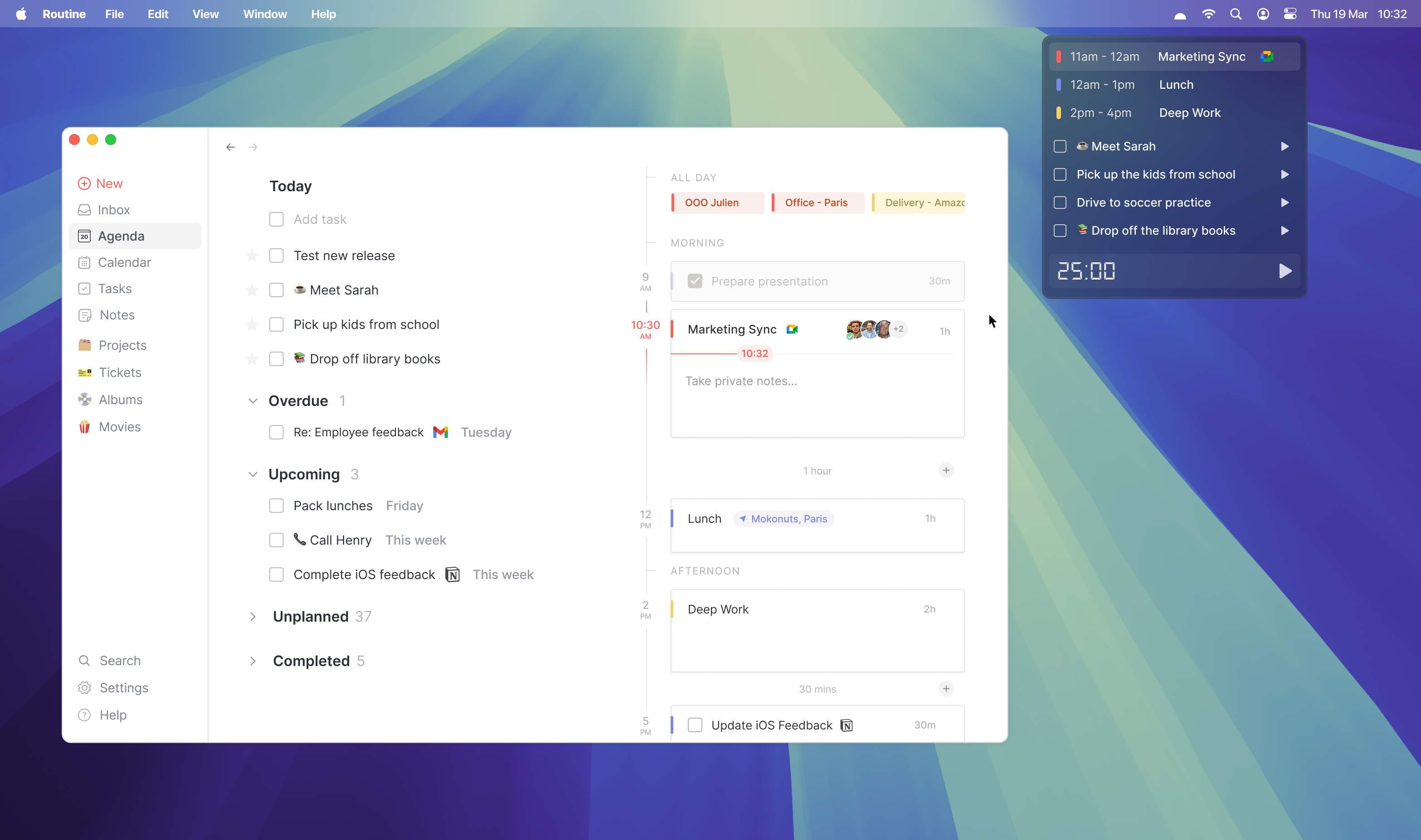 Routine now comes with a powerful widget that sits in the menu bar on macOS and Windows, always displaying the upcoming event.