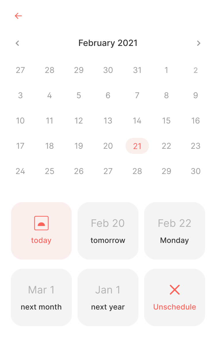 Tap twice on Today to schedule to a specific date and twice on This Week to postpone to later week.