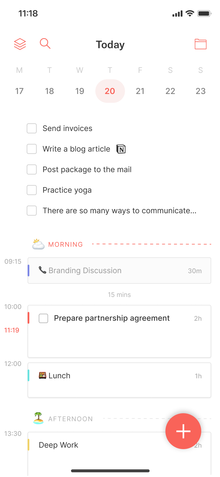 The Today screen now features both your tasks and events of the day, very much like on desktop.