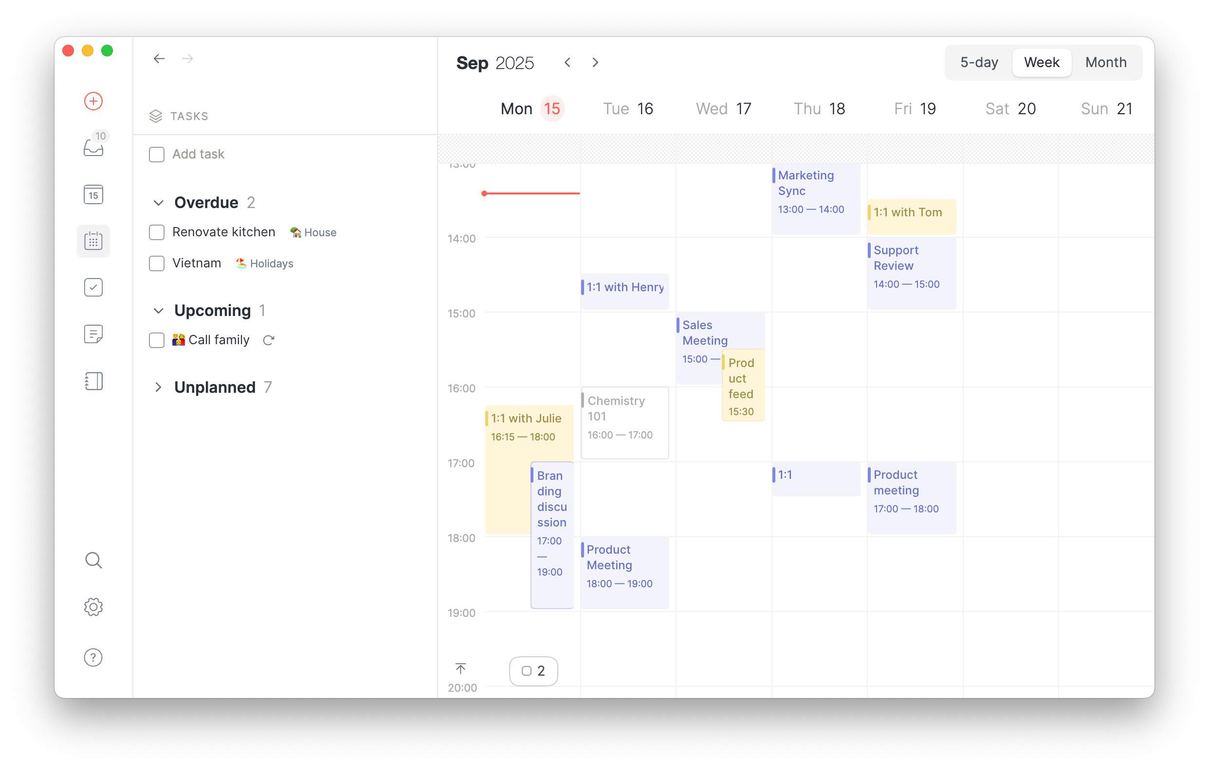 The Overdue/Upcoming/Unplanned sections have been added to the Calendar